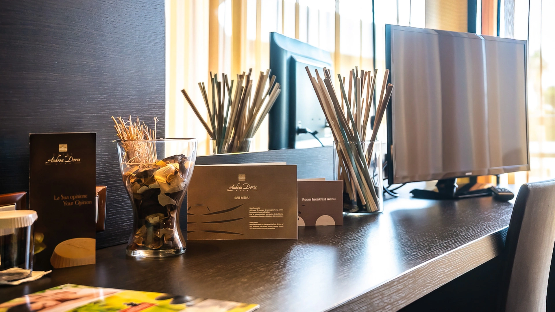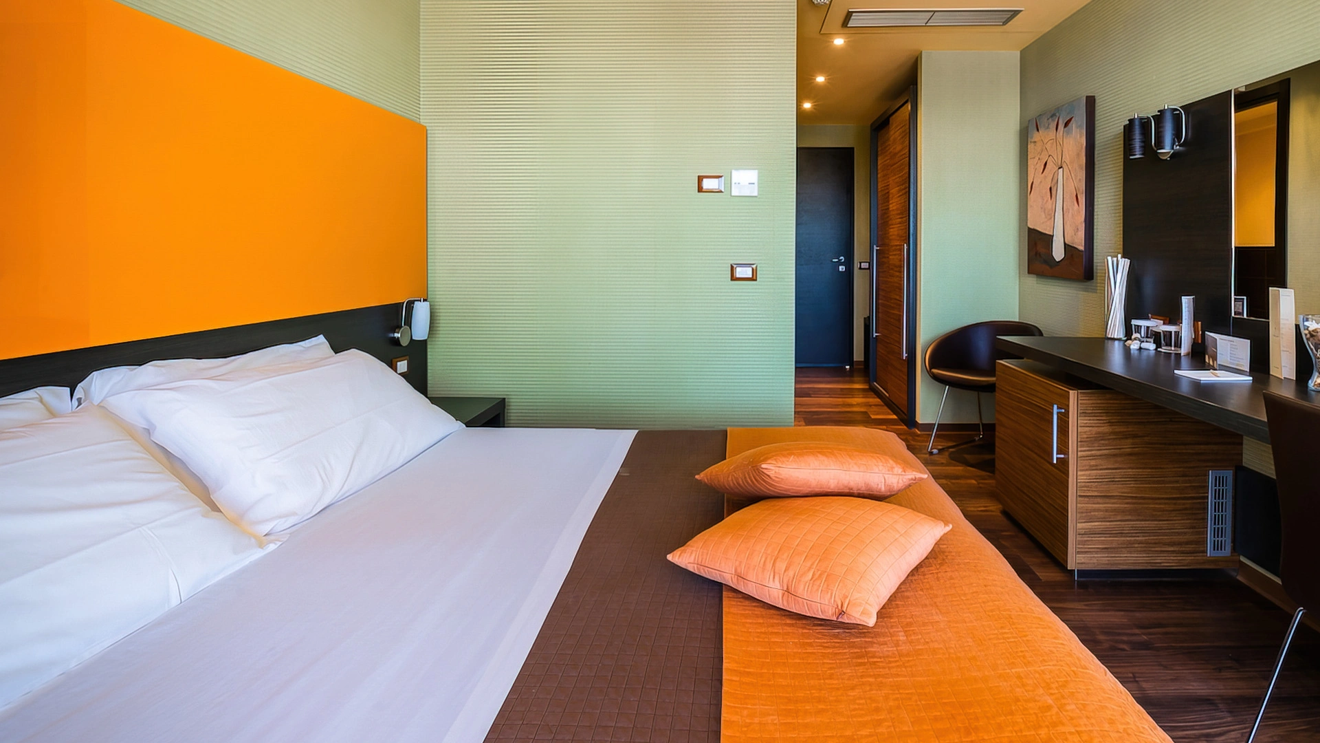 Le sistemazioni dell’Hotel Andrea Doria, suddivise nelle tipologie Classic, Superior e Suite, presentano arredi moderni di design e sono provviste di balcone con vista giardino o vista mare laterale. I servizi includono aria condizionata, TV satellitare LCD, frigobar, cassetta di sicurezza elettronica. I bagni sono completi di box doccia, phon a parete e set di cortesia. Le Camere Superior offrono soluzioni più ampie e una linea cortesia che comprende accappatoio e ciabatte. Le Suite, di circa 50 mq, dispongono di zona living separata, 2 TV LCD 32' e sono ideali anche per famiglie.