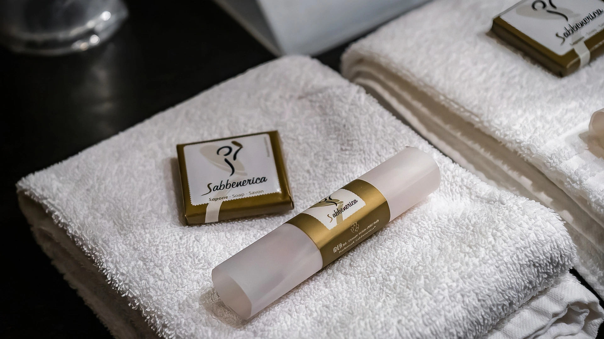 - Set di cortesia bagno: Accappatoio, Saponetta, Shampoo, Bagnoschiuma, Pantofole;