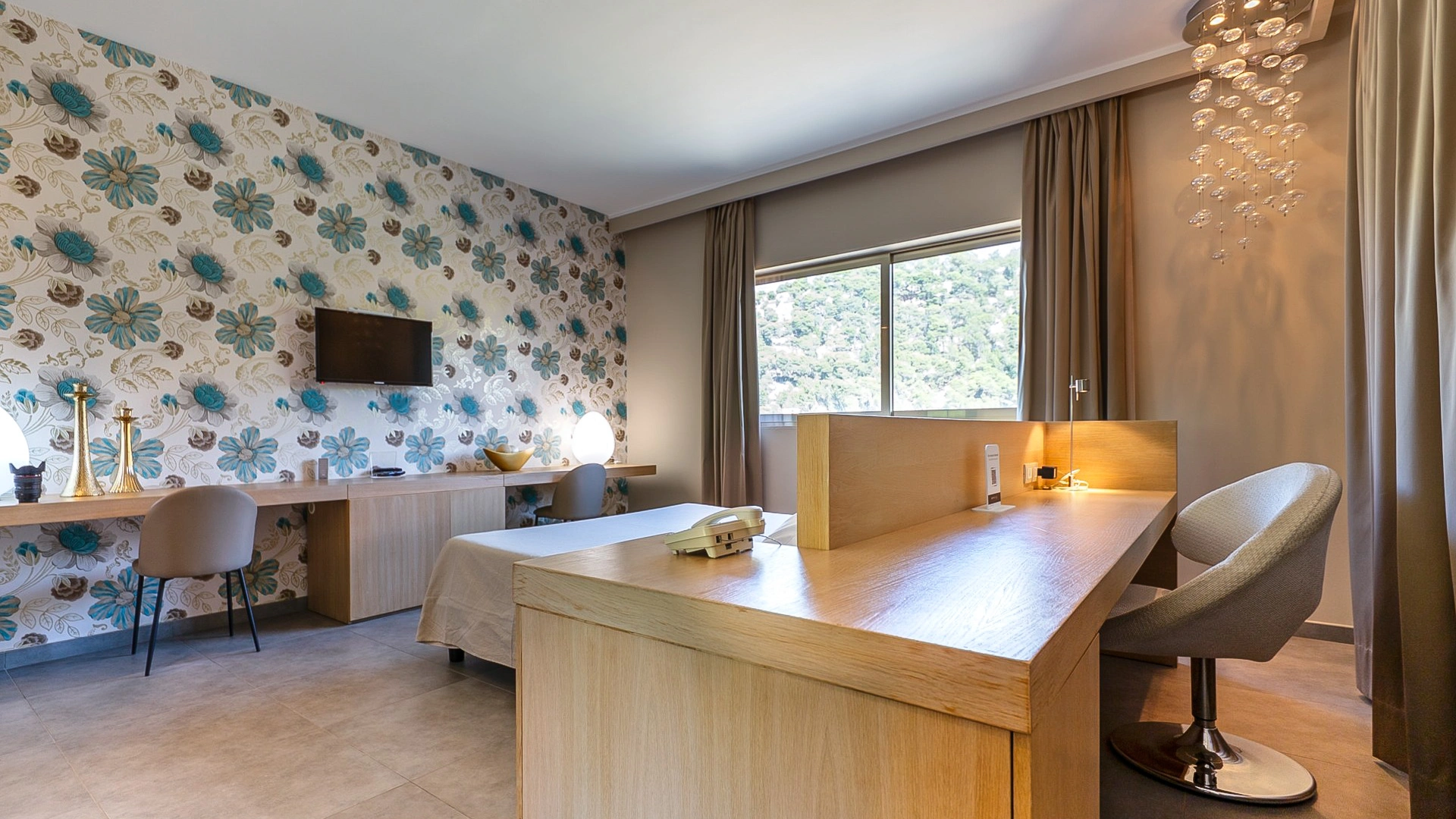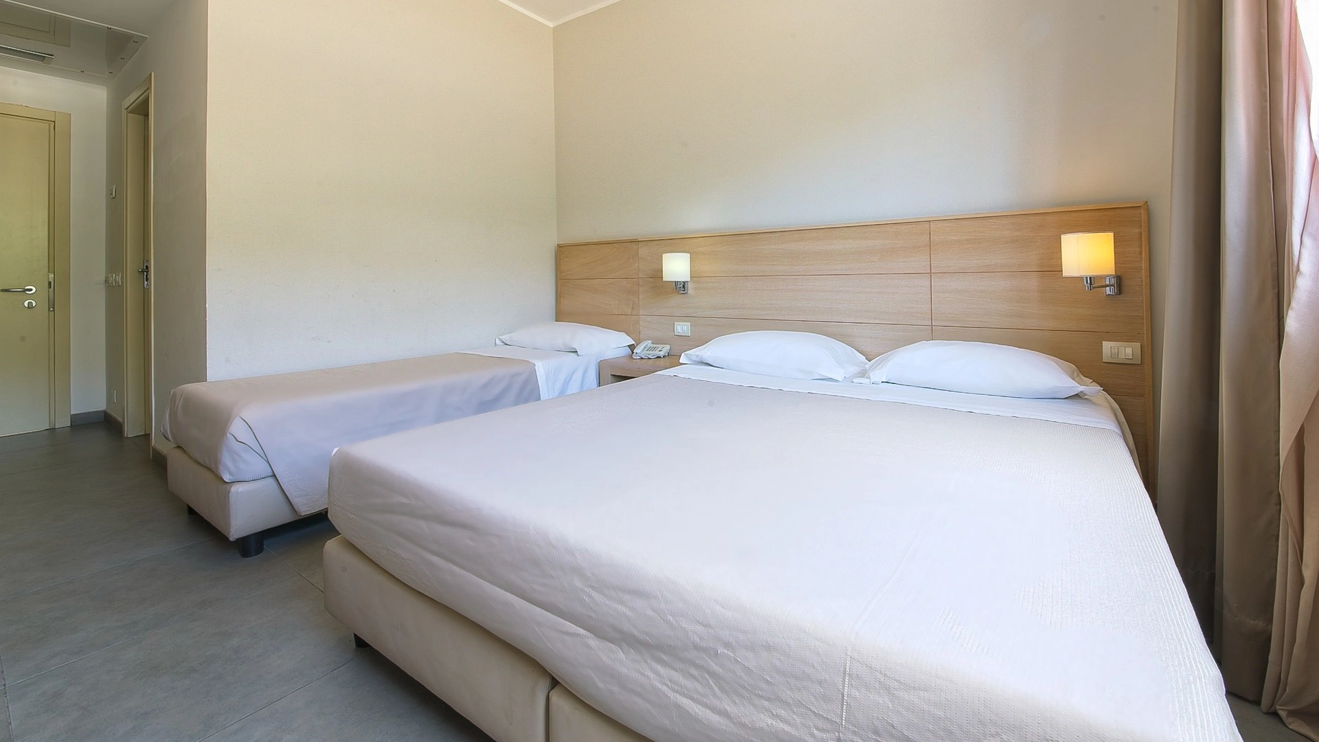 Le stanze dispongono tutte di aria condizionata, Wi-Fi, TV Sat, cassaforte, telefono, frigobar, bagno con box doccia o vasca, phon. Sono disponibili camere familiari ed è possibile richiedere la colazione in camera a pagamento.