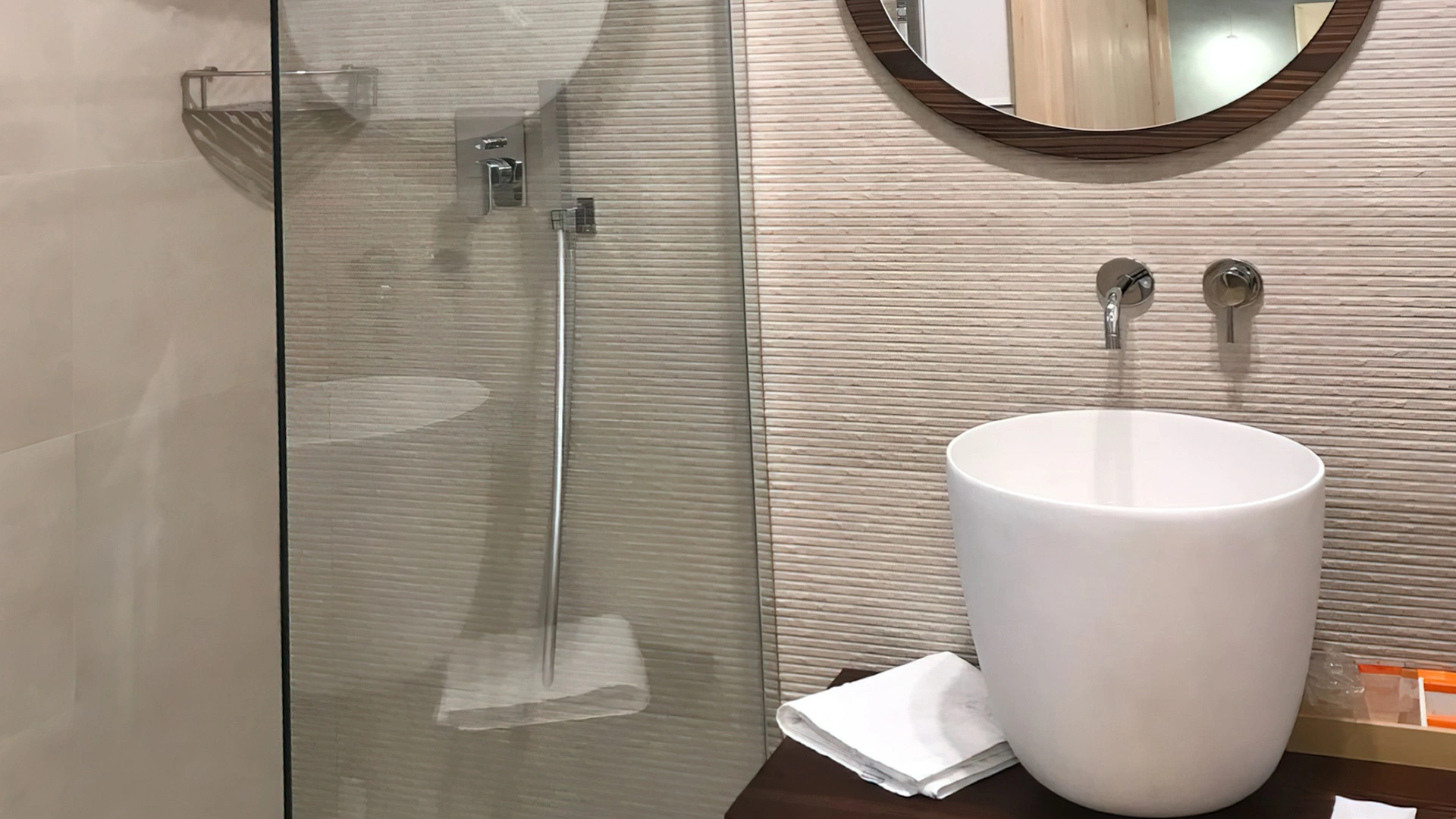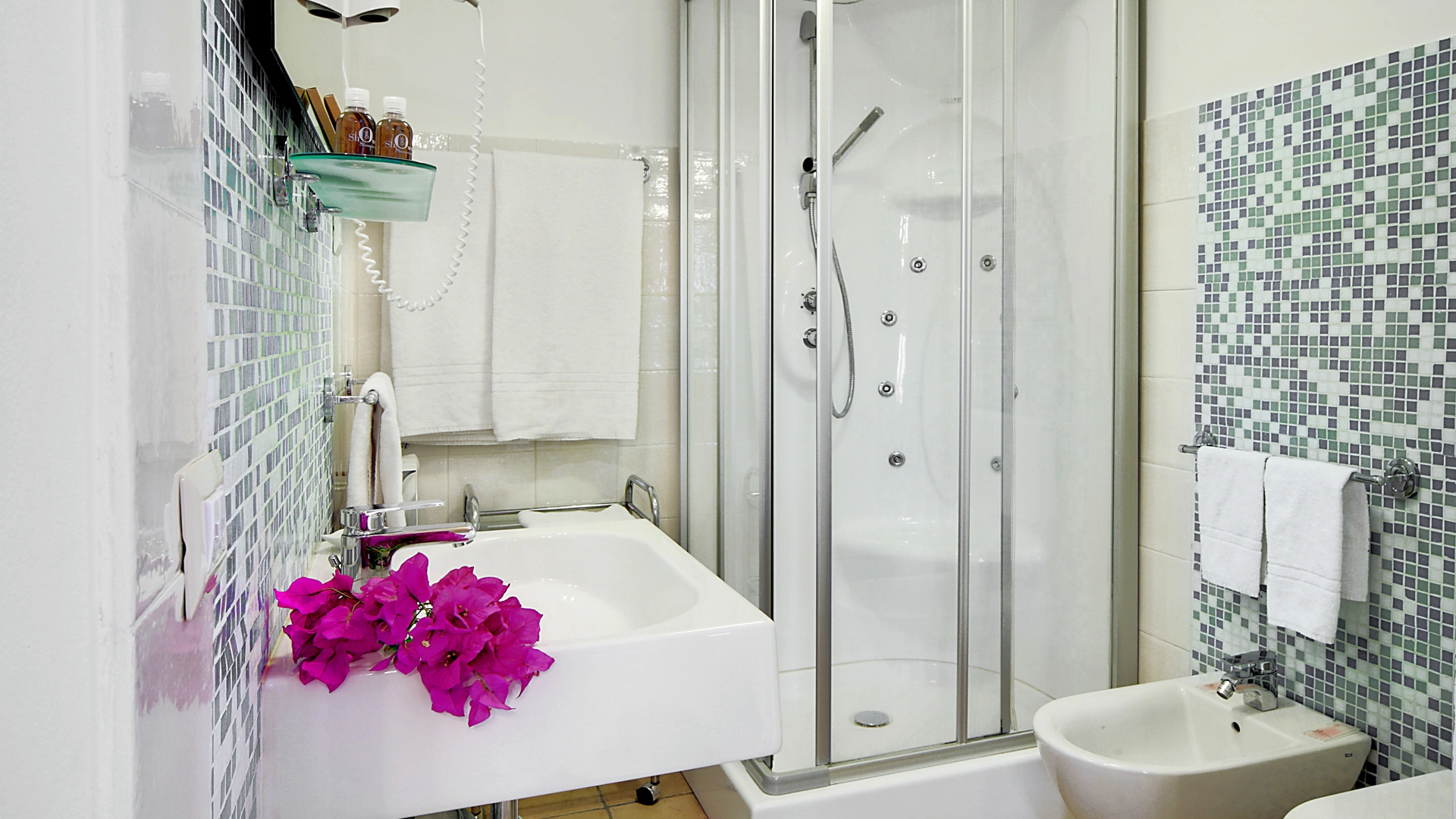 - Set di cortesia bagno: Bagnoschiuma, Cotton fioc, Cuffia da doccia, Sapone mani;