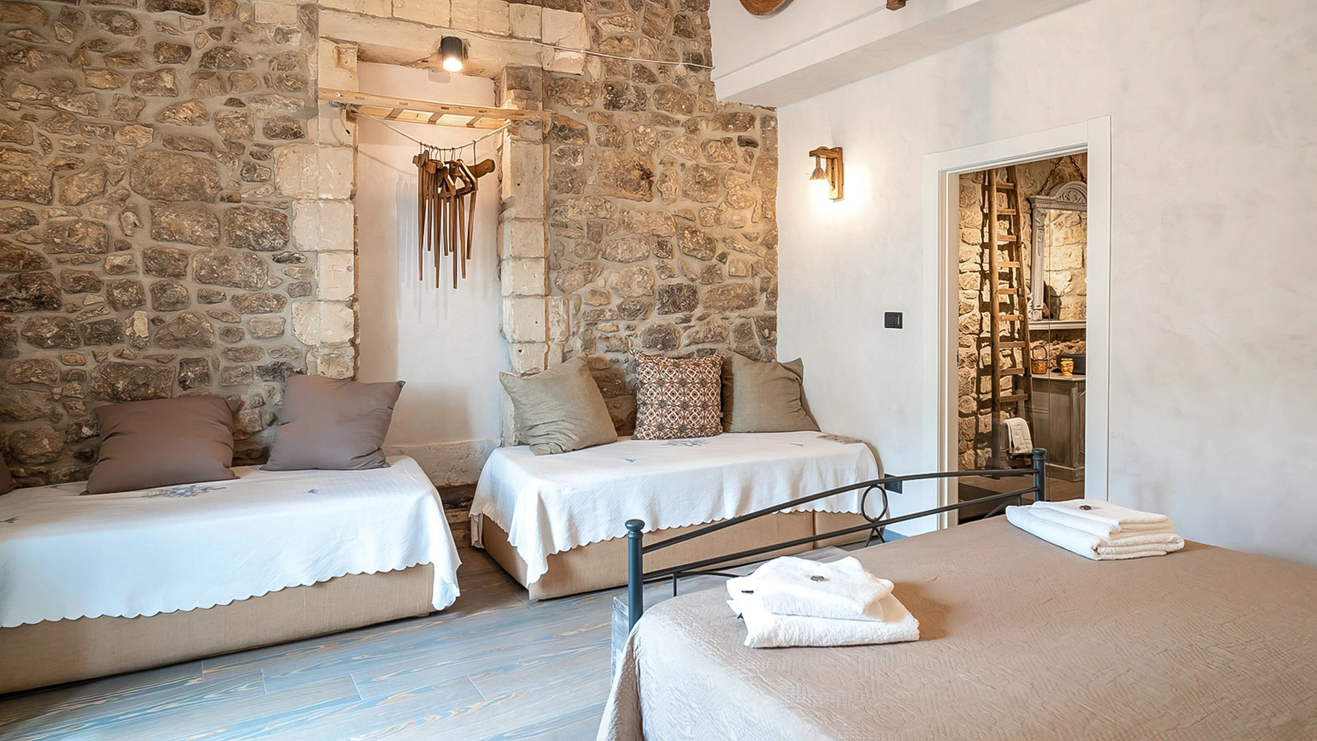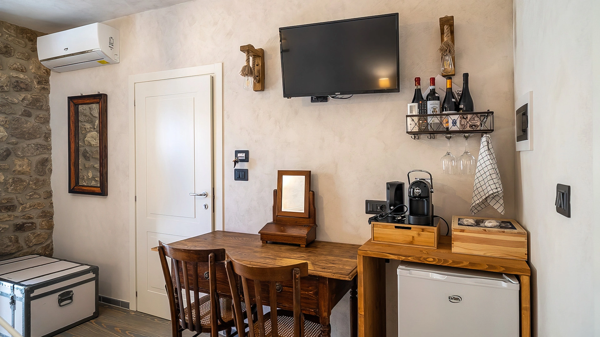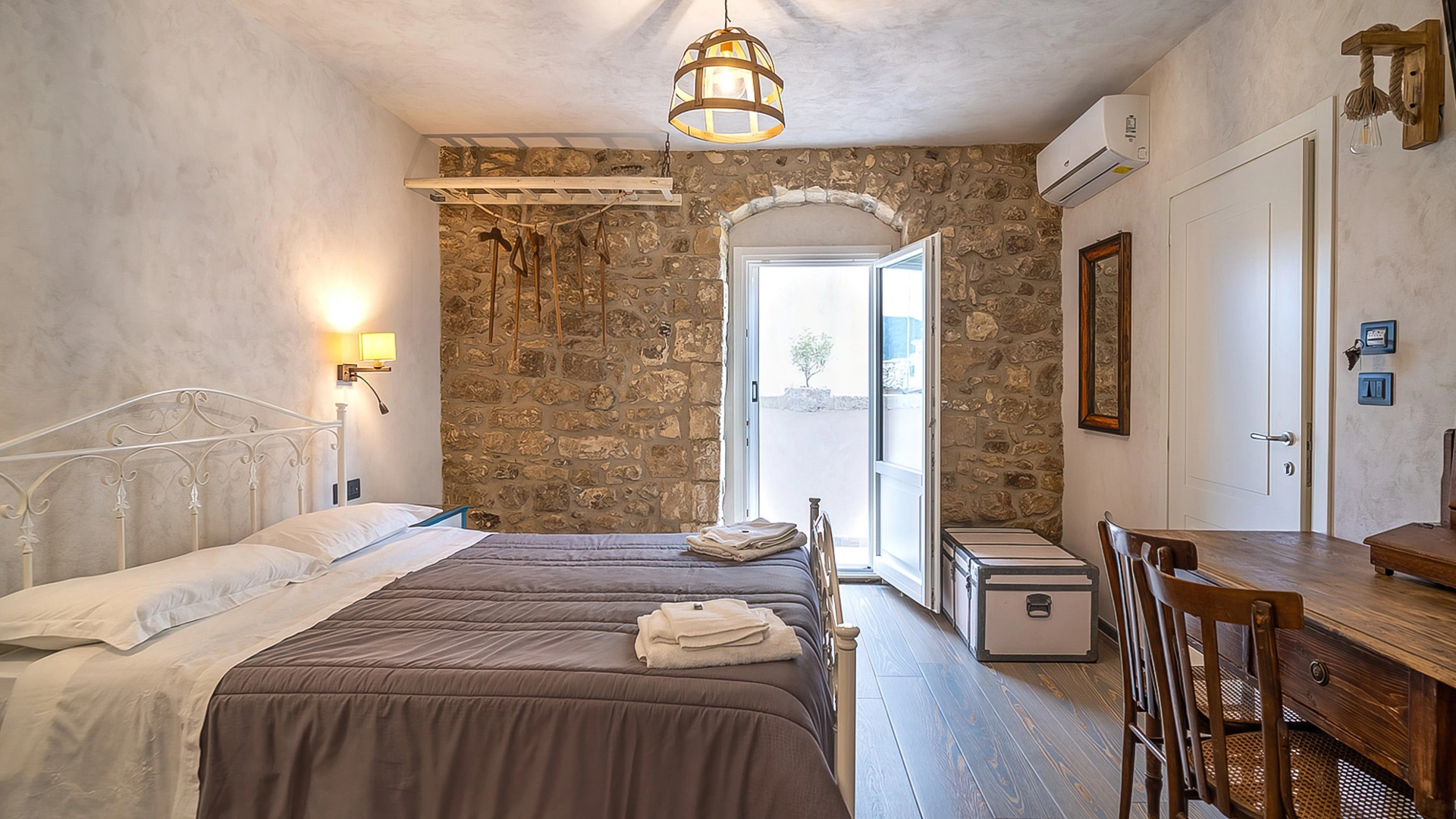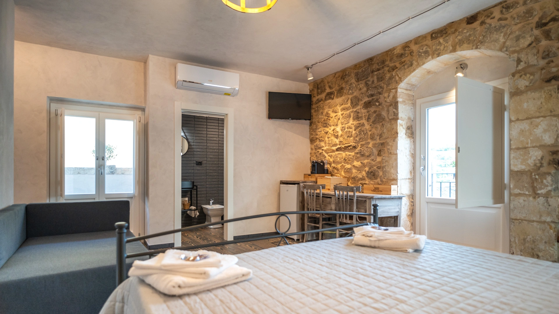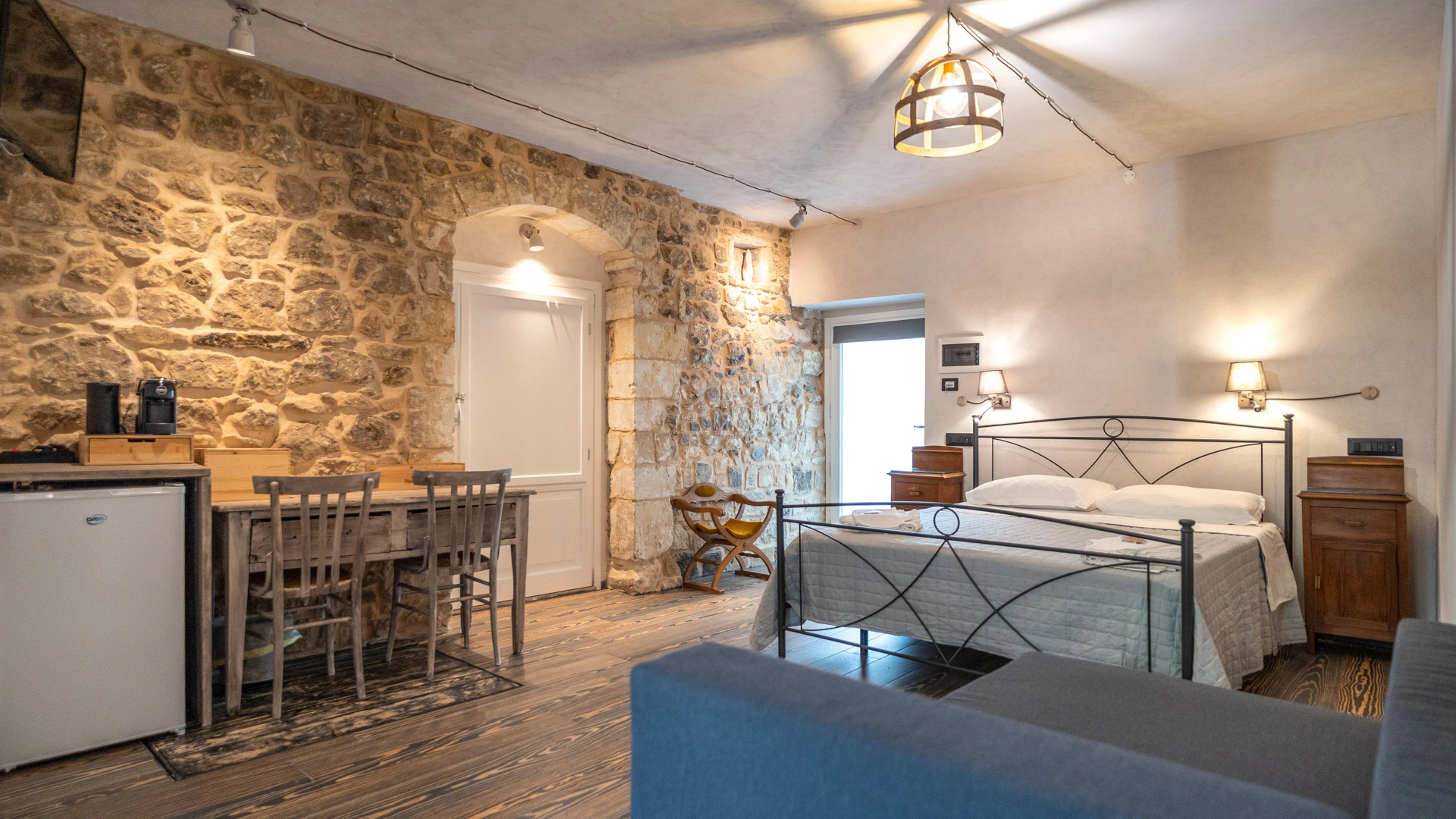 Le camere sono ospitate all’interno di due edifici storici situati a poca distanza l’uno dall’altro e presentano arredi restaurati ed elementi in pietra locale. Ciascuna sistemazione propone connessione Wi-Fi, aria condizionata, TV satellitare o smart TV, macchinetta del caffè e bollitore con selezione di tè e caffè, servizi privati con box doccia, phon e set cortesia con prodotti naturali.
