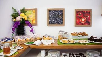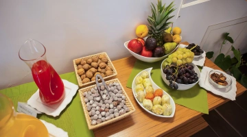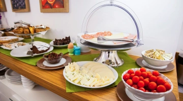 Ogni mattina viene allestito il buffet per la colazione con specialità del territorio dolci e salate. È possibile consumare la colazione in terrazza. Su richiesta viene fornito il room service.