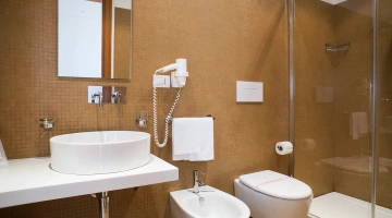- Set di cortesia bagno: Bagnoschiuma, Saponetta, Shampoo;