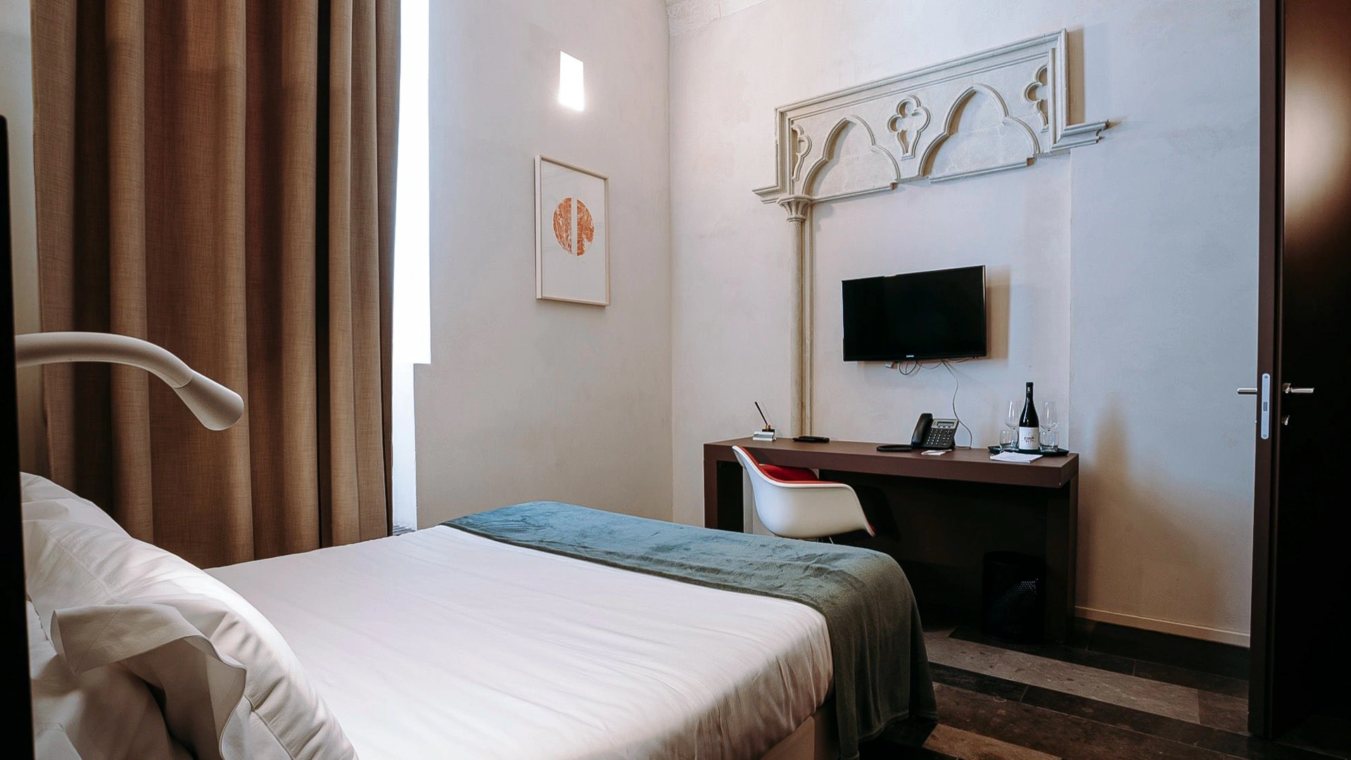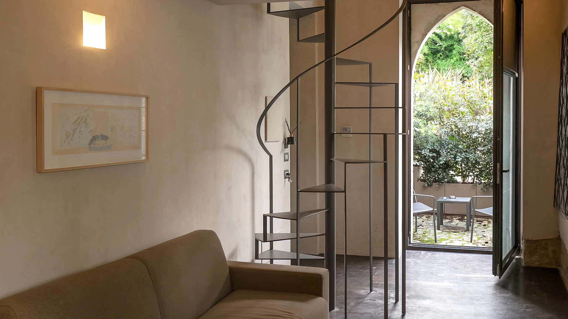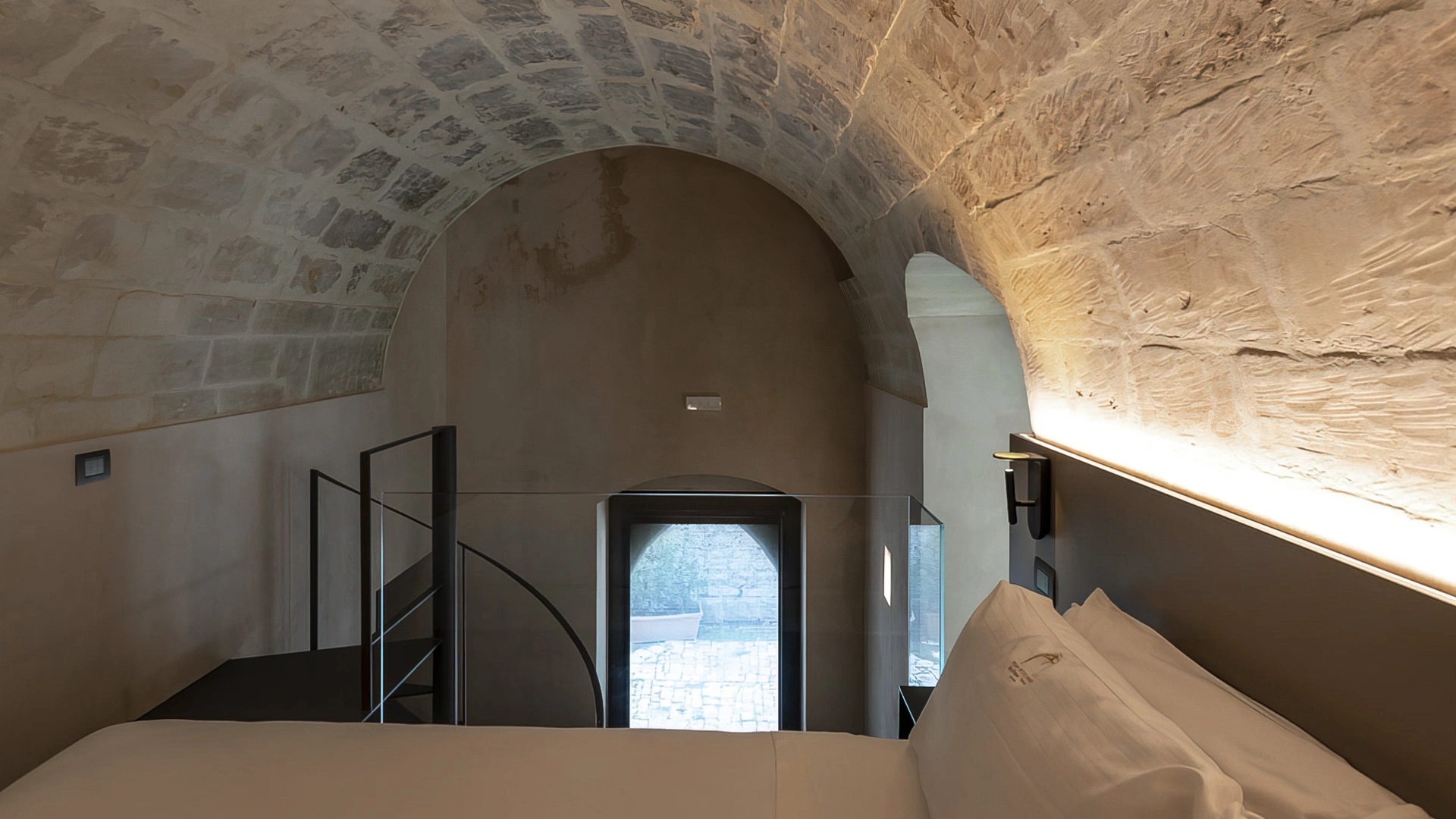 L'hotel dispone di 14 sistemazioni dal design minimale e curato, caratterizzate dal recupero di materiali originali come pavimenti o pareti in roccia e dotate di moderni comfort tra cui TV con canali Pay TV, connessione Wi-Fi in fibra, cassaforte, frigobar e bagno privato con box doccia. Le Camere Standard al piano terra dispongono di patio privato, le Camere Deluxe, situate al piano nobile della villa, si distinguono per la presenza di un balcone privato arredato. Per chi ricerca maggiore ampiezza, le Junior Suite includono un'area living integrata oltre al balcone con loggia, mentre la Suite, sviluppata su due livelli, rappresenta la soluzione più prestigiosa, offrendo ampi spazi interni e una vasca idromassaggio privata.