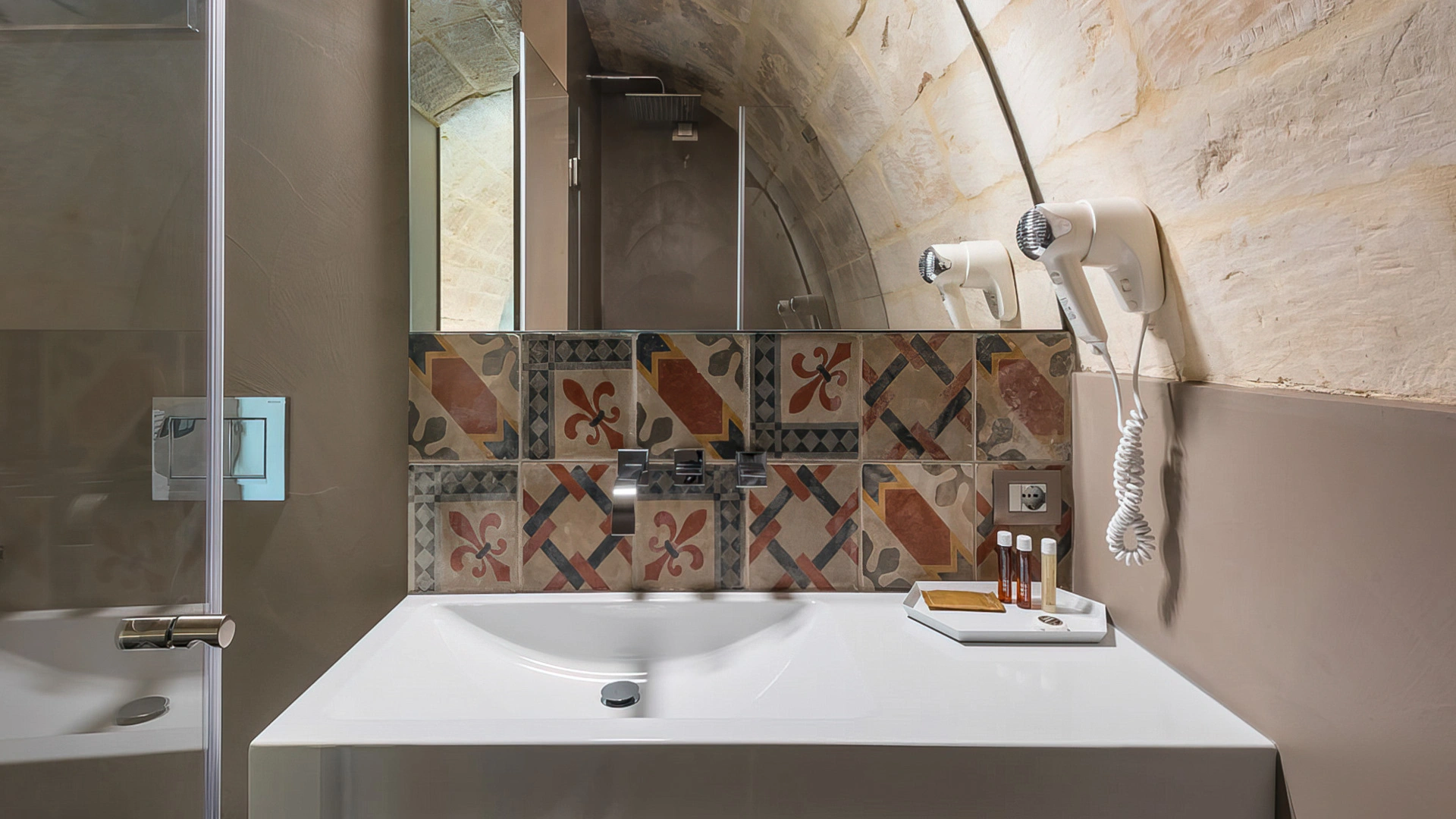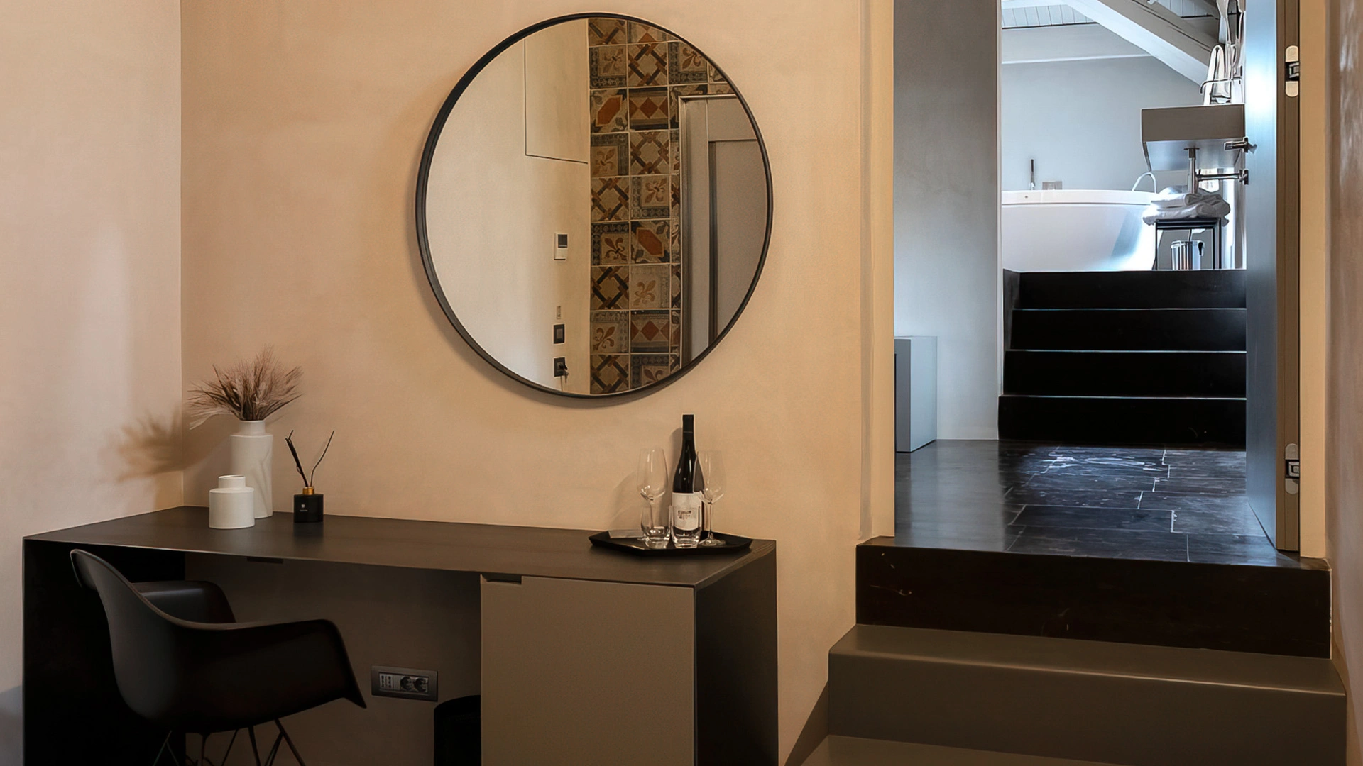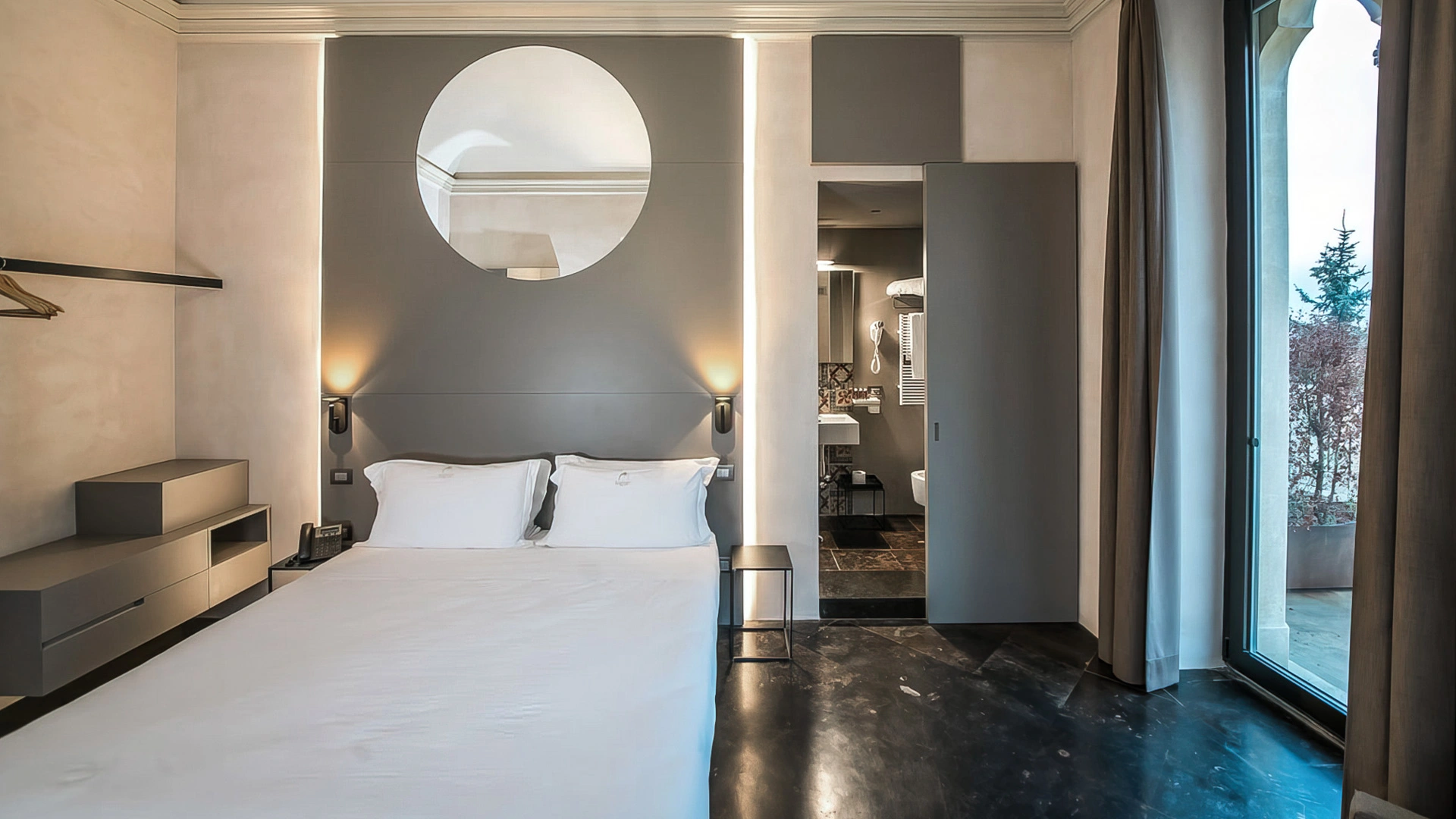 L'hotel dispone di 14 sistemazioni dal design minimale e curato, caratterizzate dal recupero di materiali originali come pavimenti o pareti in roccia e dotate di moderni comfort tra cui TV con canali Pay TV, connessione Wi-Fi in fibra, cassaforte, frigobar e bagno privato con box doccia. Le Camere Standard al piano terra dispongono di patio privato, le Camere Deluxe, situate al piano nobile della villa, si distinguono per la presenza di un balcone privato arredato. Per chi ricerca maggiore ampiezza, le Junior Suite includono un'area living integrata oltre al balcone con loggia, mentre la Suite, sviluppata su due livelli, rappresenta la soluzione più prestigiosa, offrendo ampi spazi interni e una vasca idromassaggio privata.