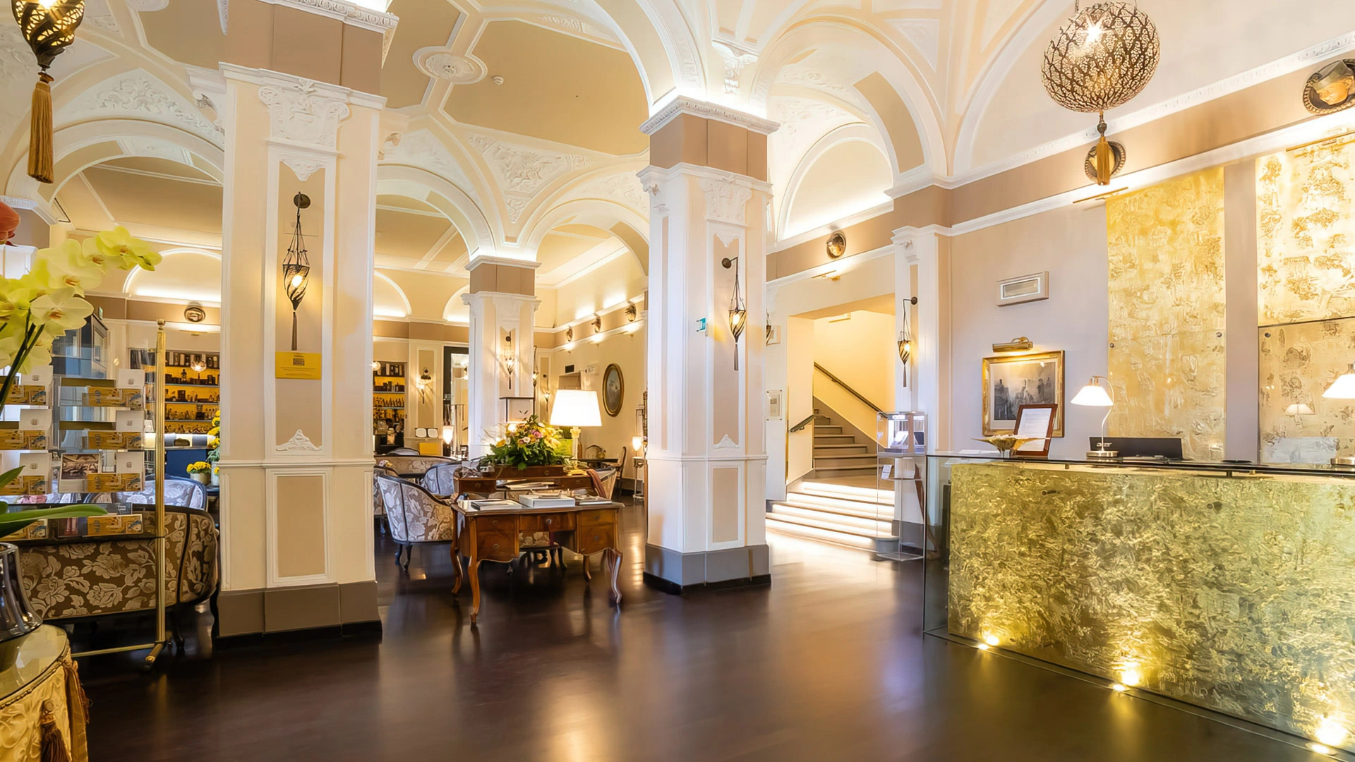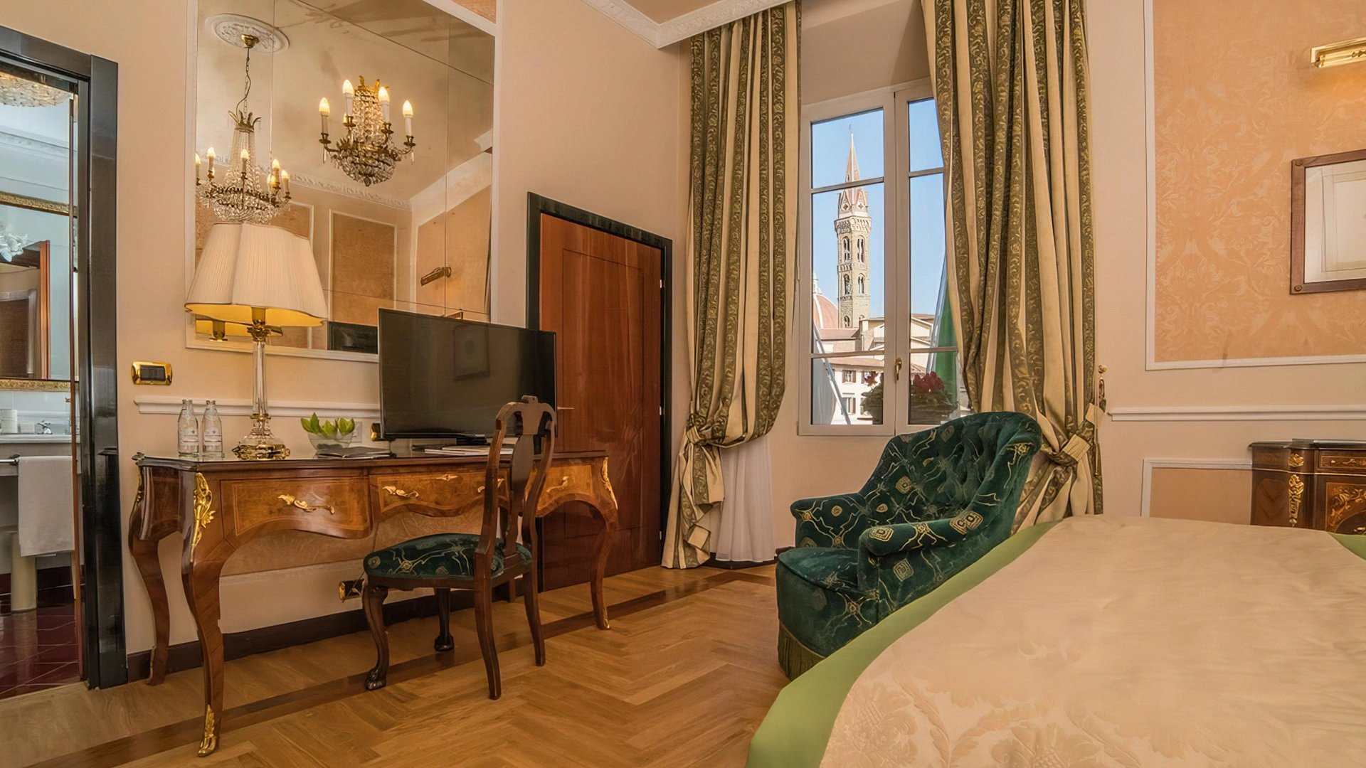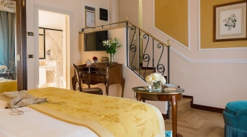 Hotel Bernini Palace è un 5 stelle del centro storico di Firenze ospitato in un palazzo del XV secolo con al suo interno affreschi, opere d'arte, camere e suite in stile rinascimentale. La struttura dall'ambiente sontuoso e ricercato mette a disposizione una moderna sala business, un elegante lounge bar dove poter gustare aperitivi, una terrazza con solarium, un ristorante aperto a pranzo e cena e un impeccabile servizio concierge.