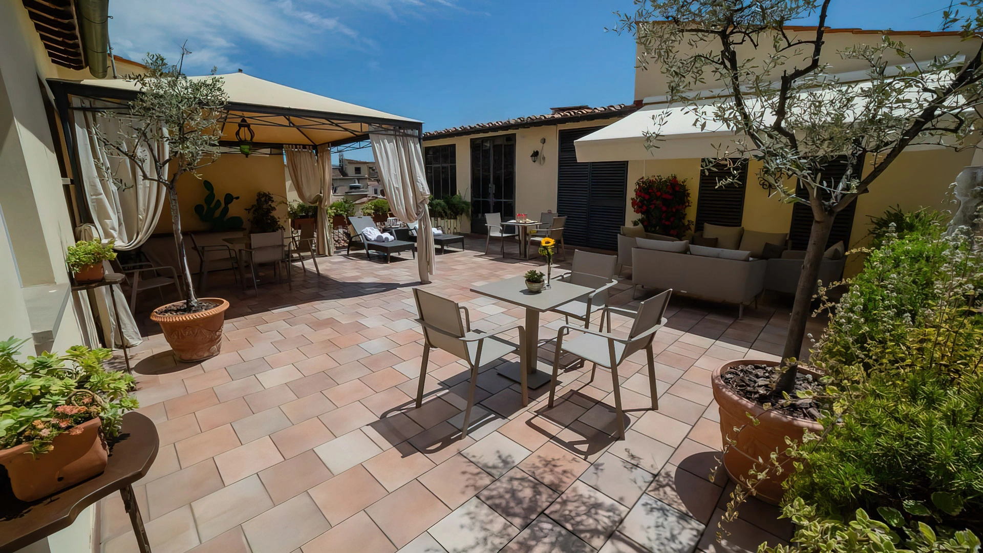 L'hotel ospita una sala riunioni di recente ristrutturazione, la Sala Corsini, di capienza massima di 15 persone. È presente inoltre la suggestiva Sala Parlamento, impreziosita dal soffitto affrescato, di capienza massima 30 persone. La struttura mette a disposizione infine la Meeting Suite per riunioni di massimo 10 persone e il Ristorante La Chiostrina per pranzi di lavoro e coffee break. Tutte le sale sono illuminate con luce naturale e sono dotate della fibra ottica per una connessione ad internet veloce.