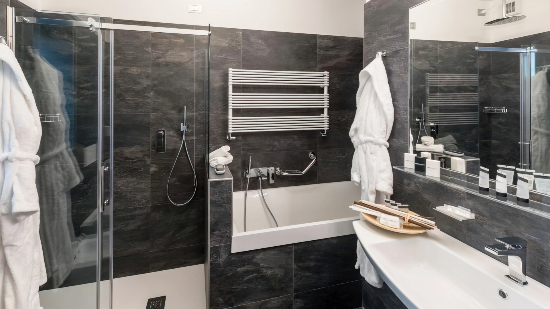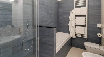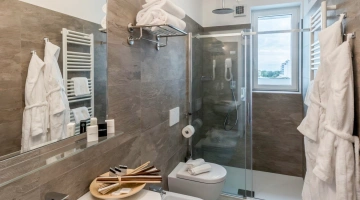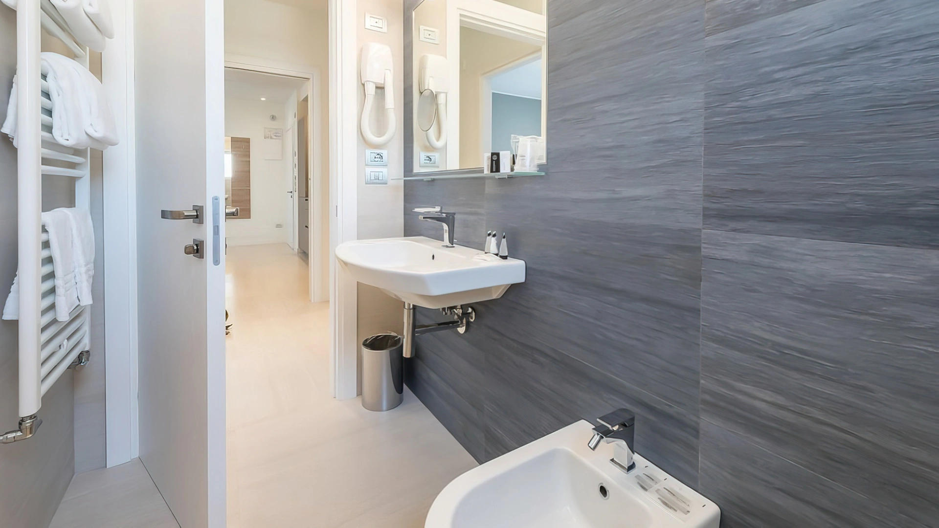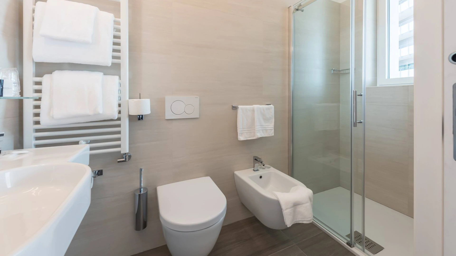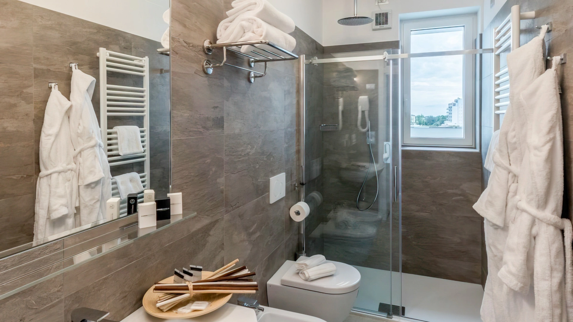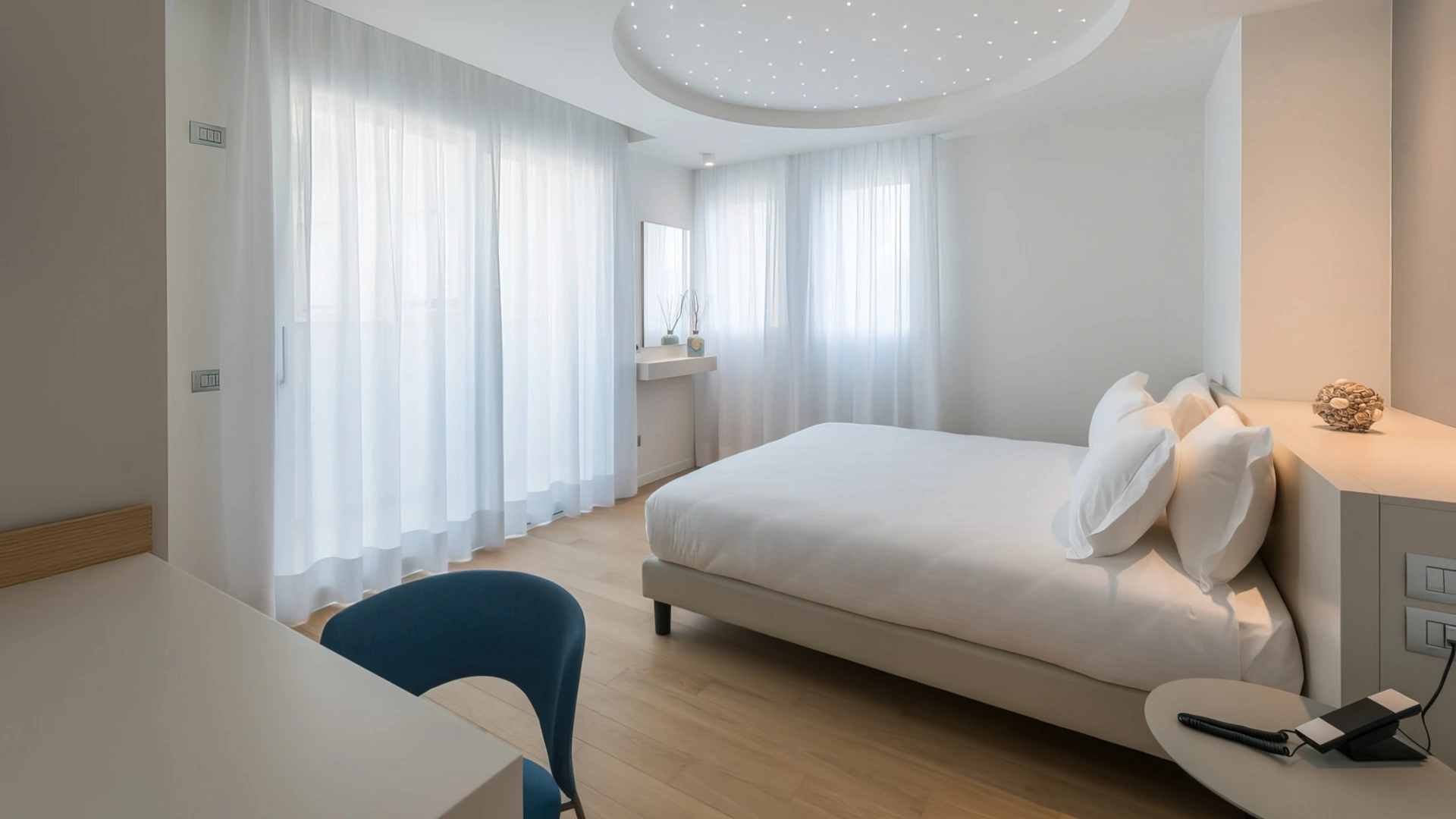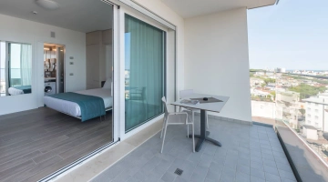 Tutte le sistemazioni, insonorizzate e dotate di impianto di domotica centralizzata, offrono ampia terrazza o balcone, aria condizionata, riscaldamento, TV, sistema audio con filodiffusione e bluetooth, minibar, cassaforte, connessione Wi-Fi e bagno privato con box doccia e asciugacapelli. Alcune camere godono di vista mare.