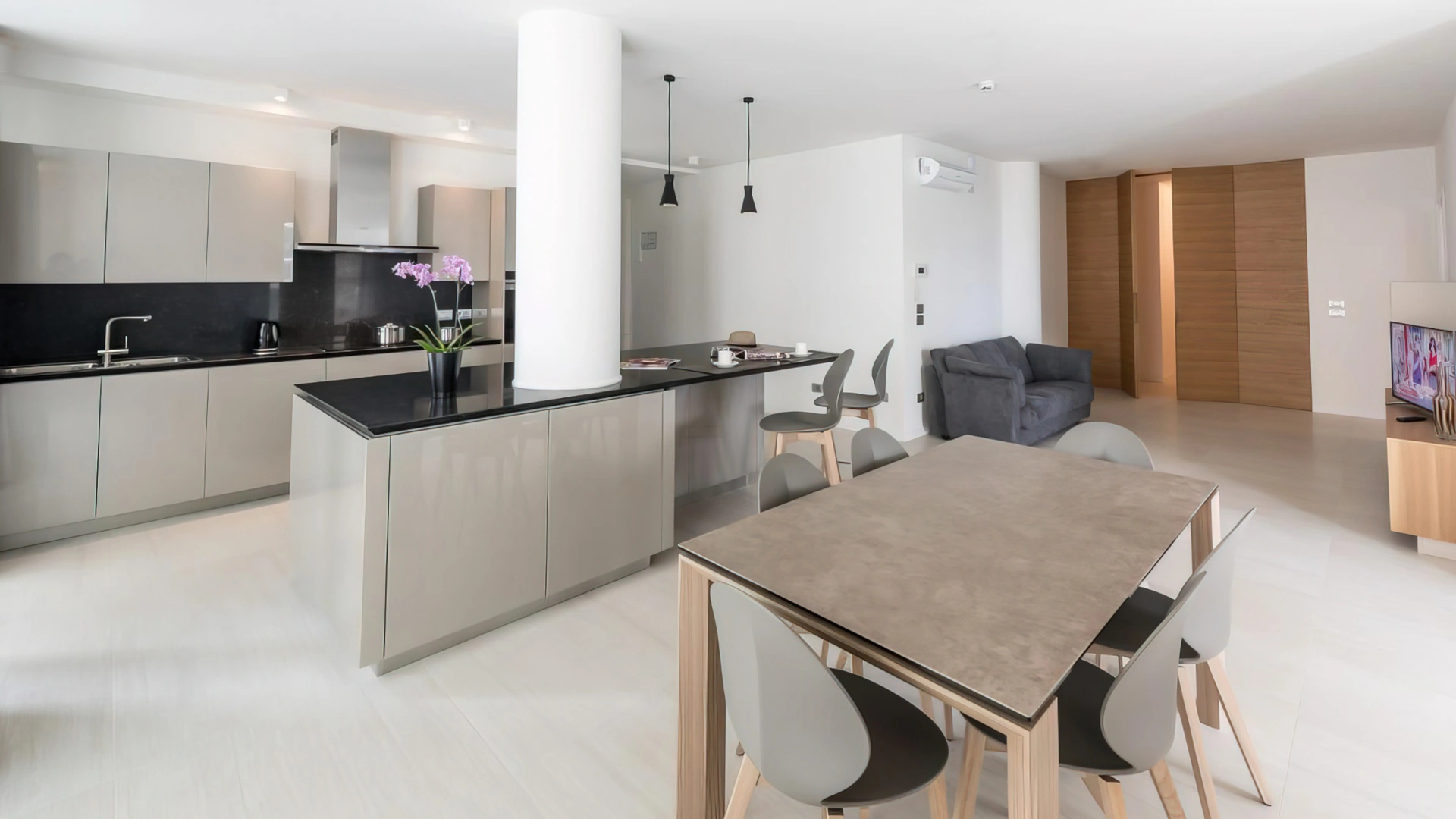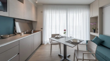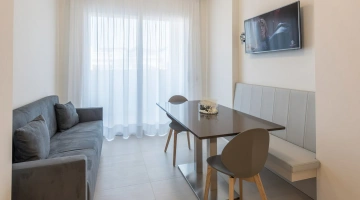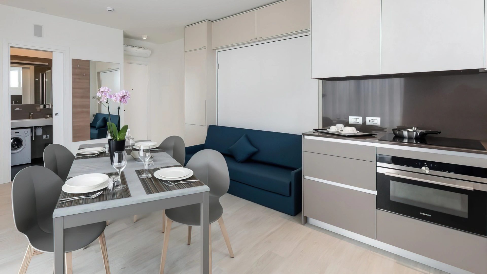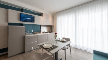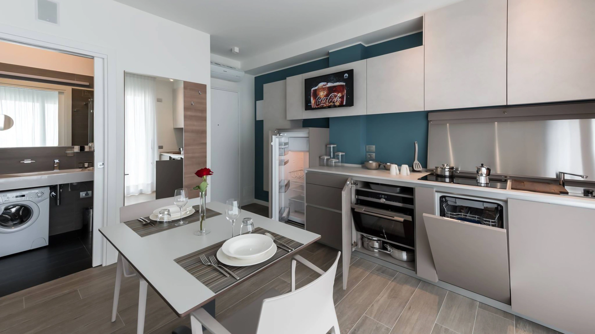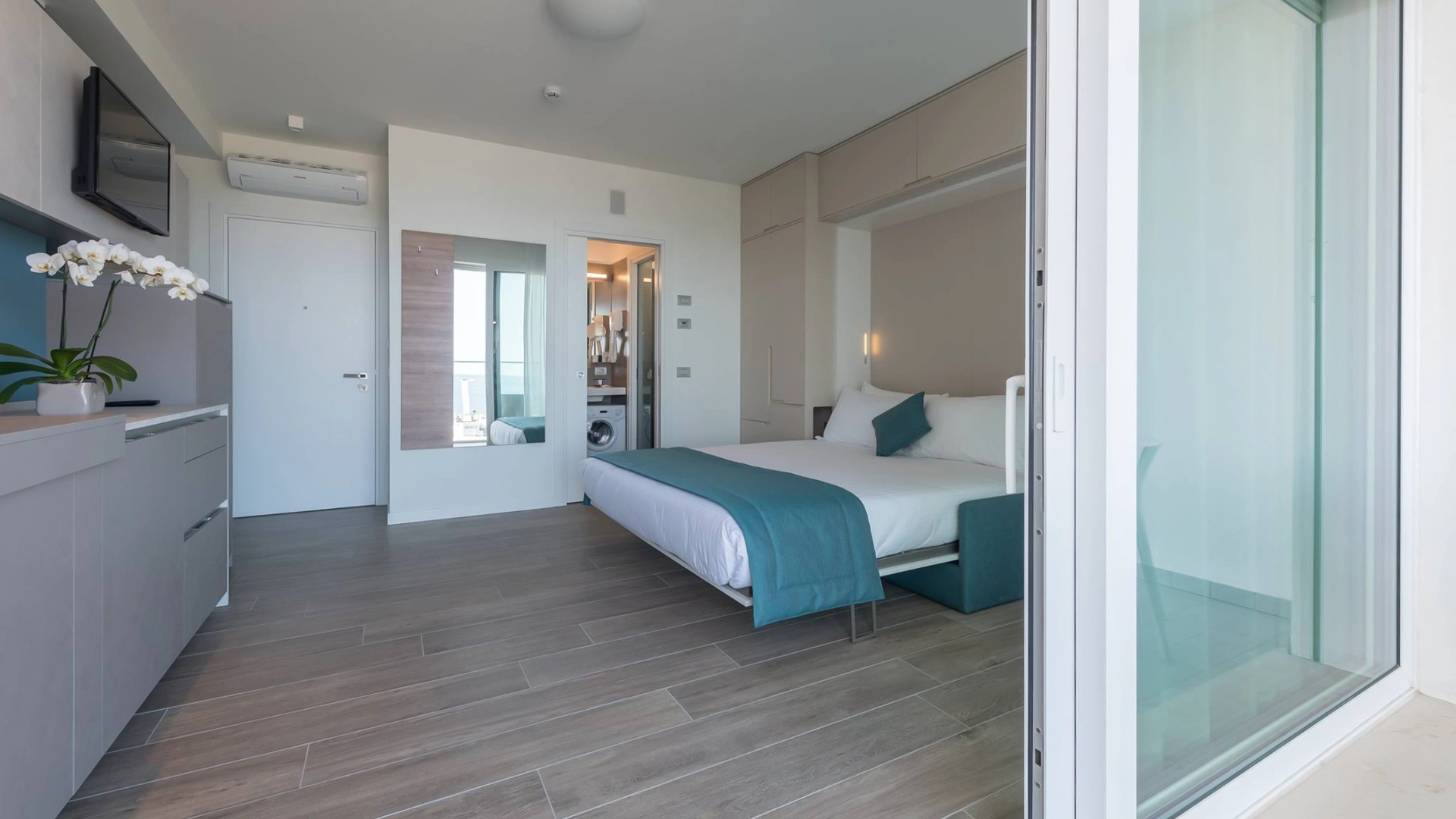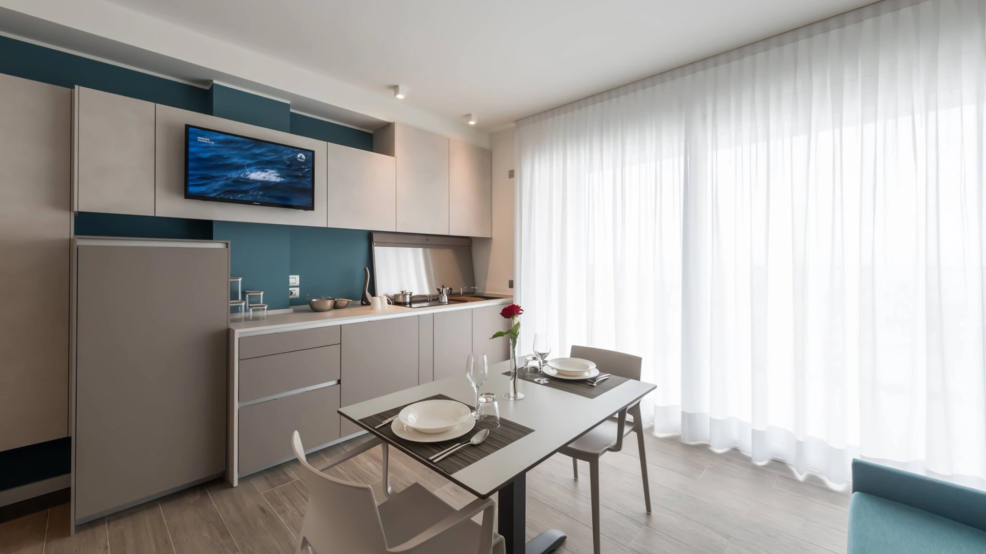 La struttura propone anche appartamenti bilocali, trilocali e quadrilocali, da 50 a 130 mq, con ampie terrazze vista mare e cucine complete di elettrodomestici di ultima generazione, ideali per ospitare fino a 6 persone.