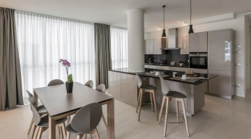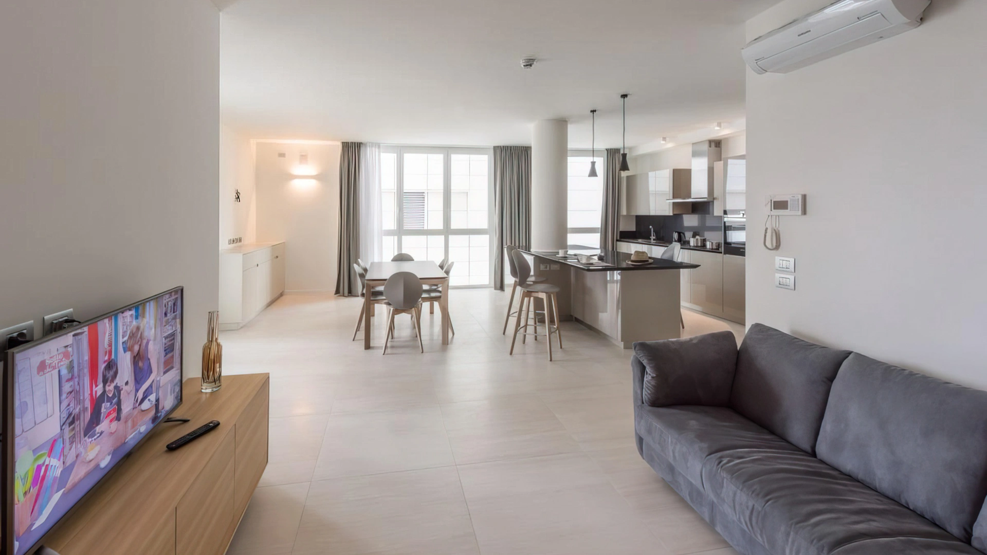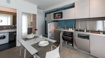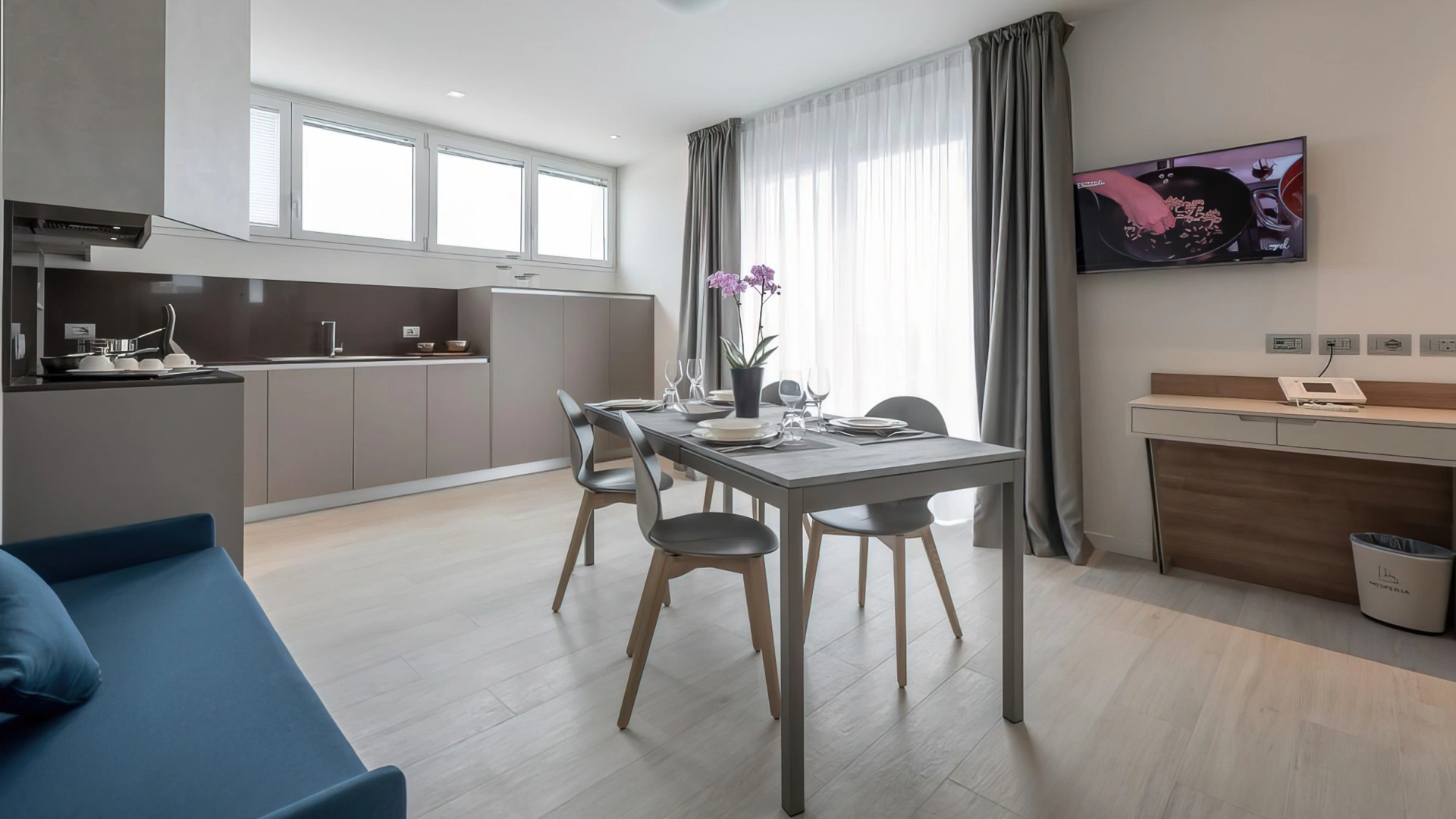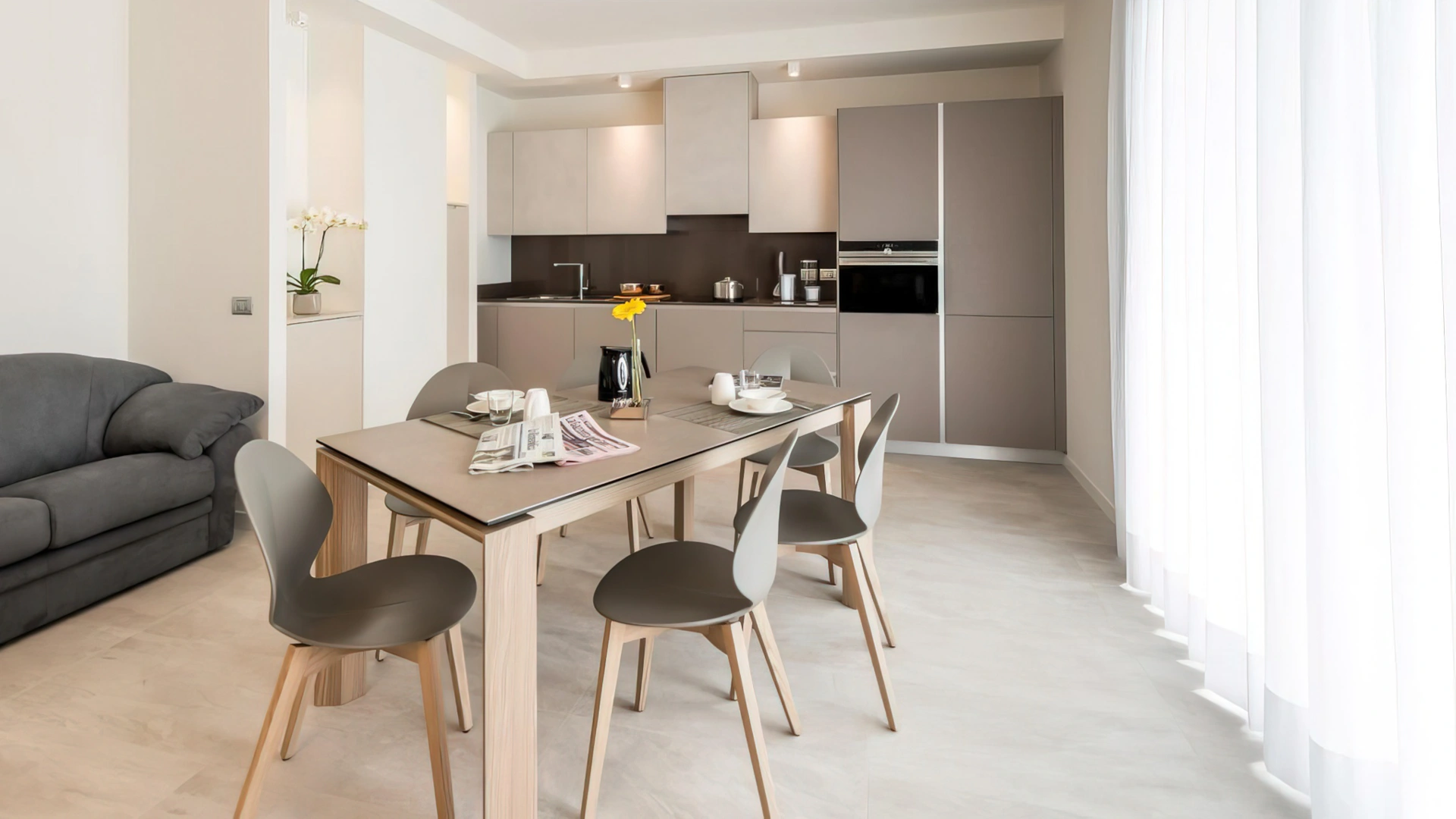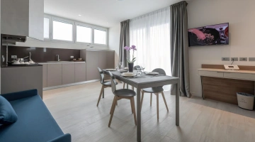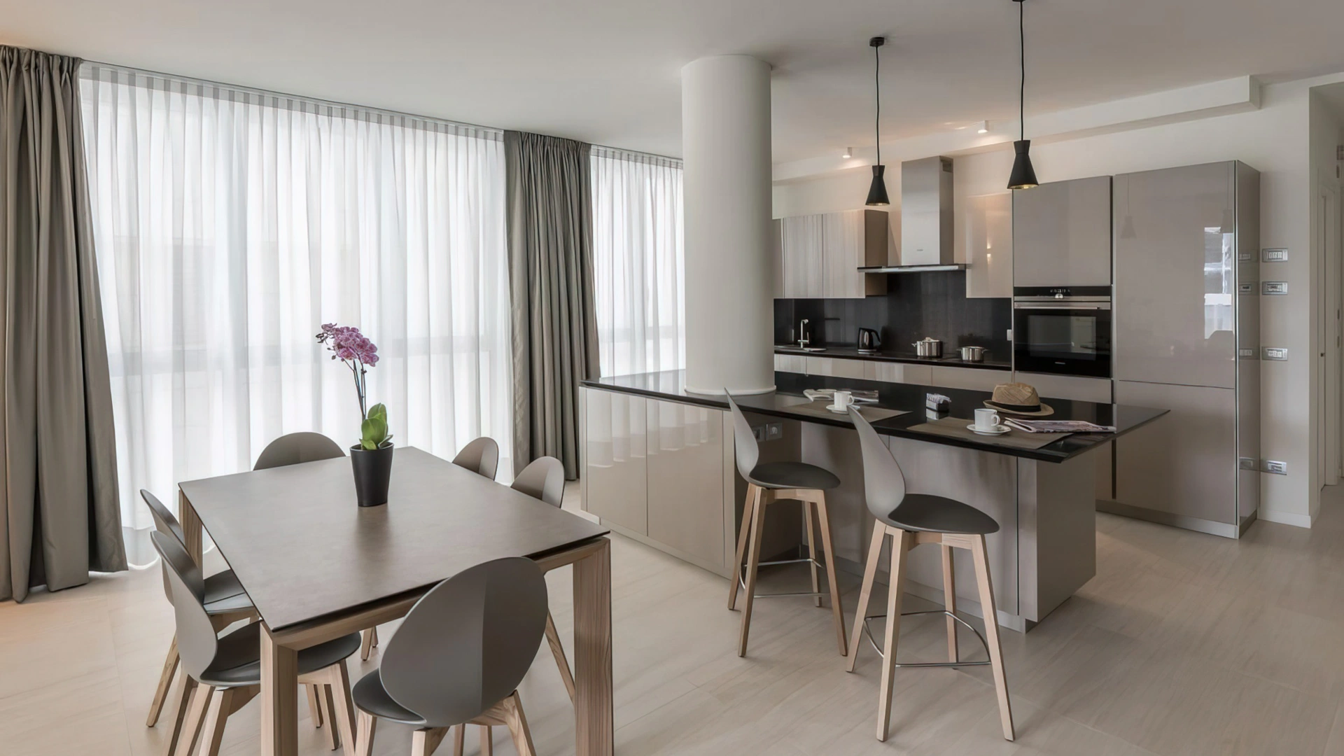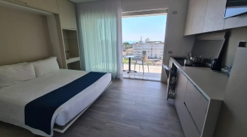 La struttura propone anche appartamenti bilocali, trilocali e quadrilocali, da 50 a 130 mq, con ampie terrazze vista mare e cucine complete di elettrodomestici di ultima generazione, ideali per ospitare fino a 6 persone.