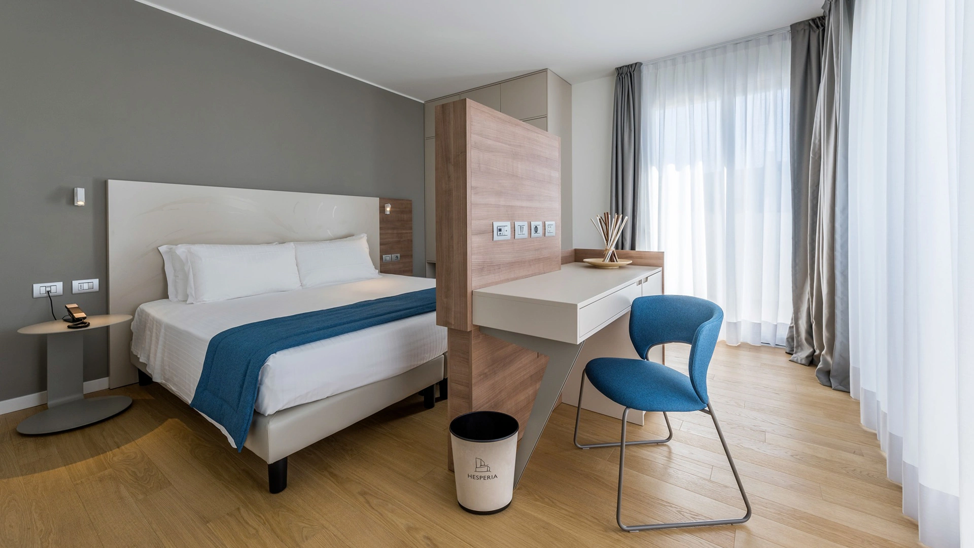 Hesperia Hotel & Residence è una struttura 4 stelle situata a Jesolo in zona centrale. Mette a disposizione camere, suite e appartamenti, tutti insonorizzati e dotati di aria condizionata, balcone e domotica centralizzata. Gli ospiti hanno a disposizione una spiaggia privata, un centro benessere con piscina idromassaggio, una terrazza solarium panoramica e un parcheggio riservato gratuito.