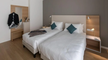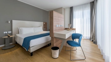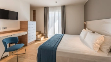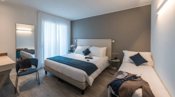 Sono disponibili soluzioni con letto rotondo, camere comunicanti e sistemazioni con zona giorno, letto a scomparsa e cucina attrezzata.